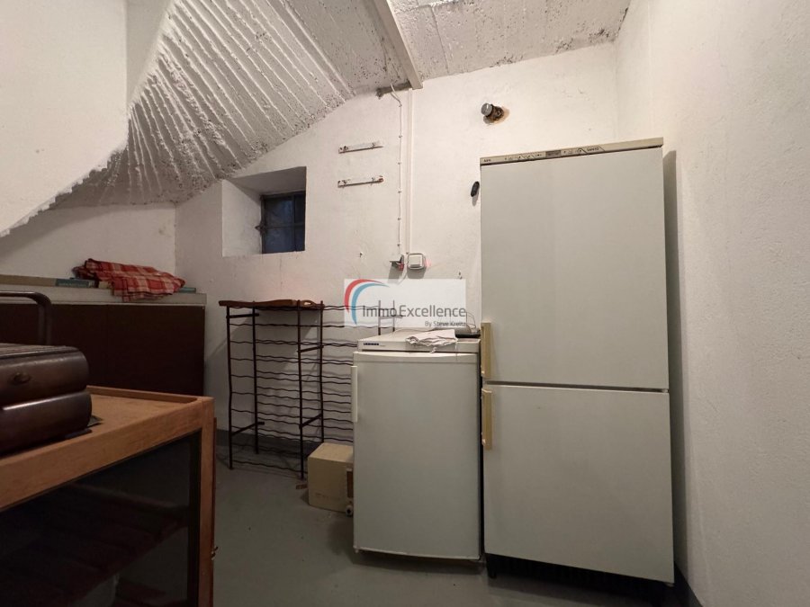 Der komplette Keller umfasst: Eine Treppenanlage: 5,10 m², einen Flur : 10,74 m², ein bis vier Keller (5,23 m², 7,84 m², 5,97 m², 3,50 m²), ein Heizraum: 17,40 m², eine Werkstatt: 11,07 m², eine Waschküche: 6,80 m² mit direktem Zugang zur Terrasse